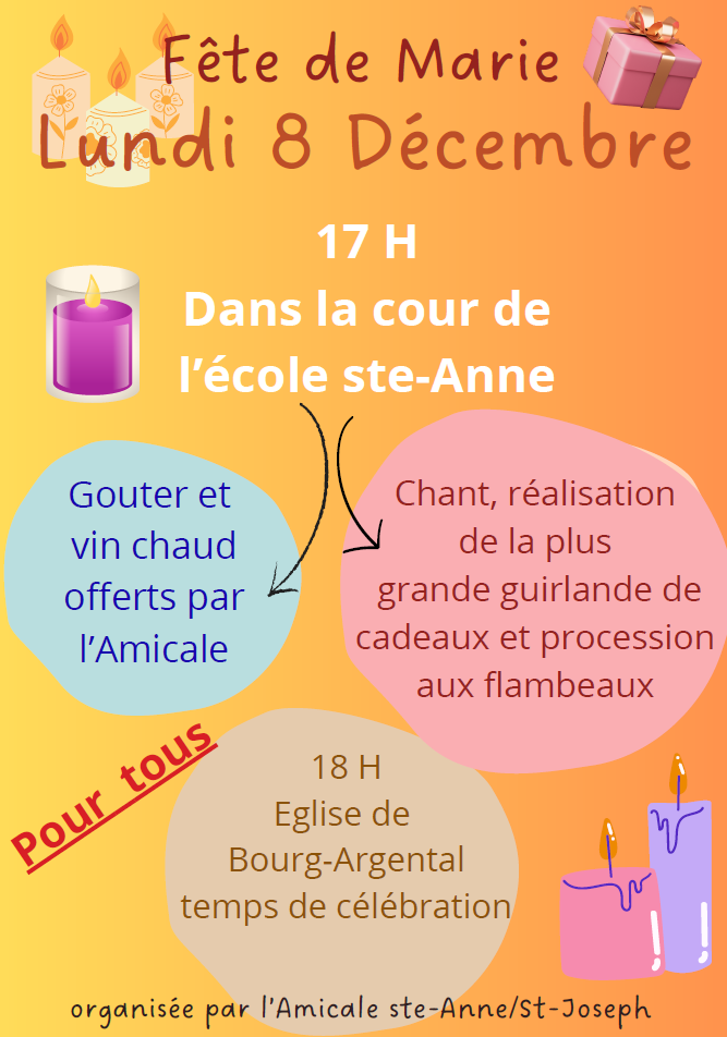 Venez fêter l’Immaculée Conception lundi 8 décembre à Bourg :